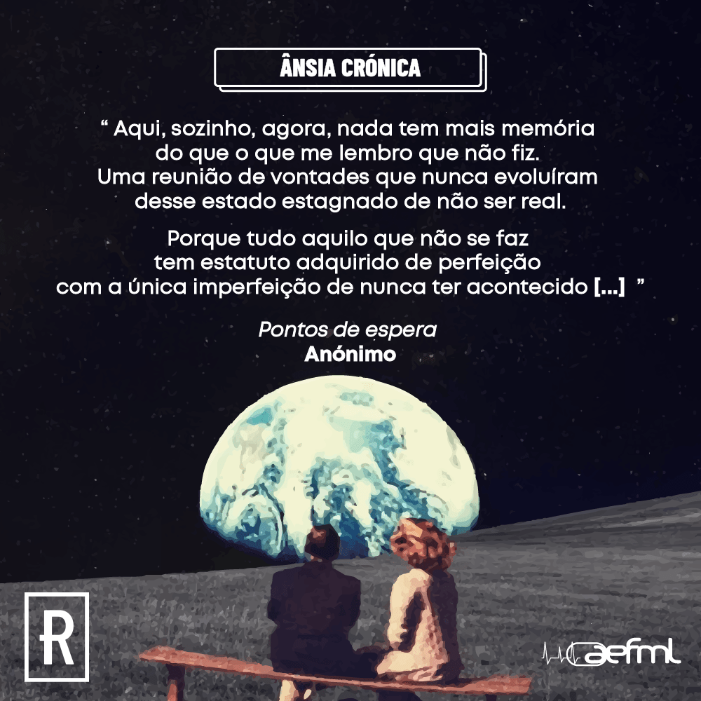 Irónica a falta de oportunidade que identifico quando coexisto com a consciência de que a existência de uma oportunidade nunca se sobrepõe à existência do momento… Porque tinha de esperar pela oportunidade? Pelo tempo certo e a circunstância mal idealizada da qual só sei que nunca existe e que nunca é esta?